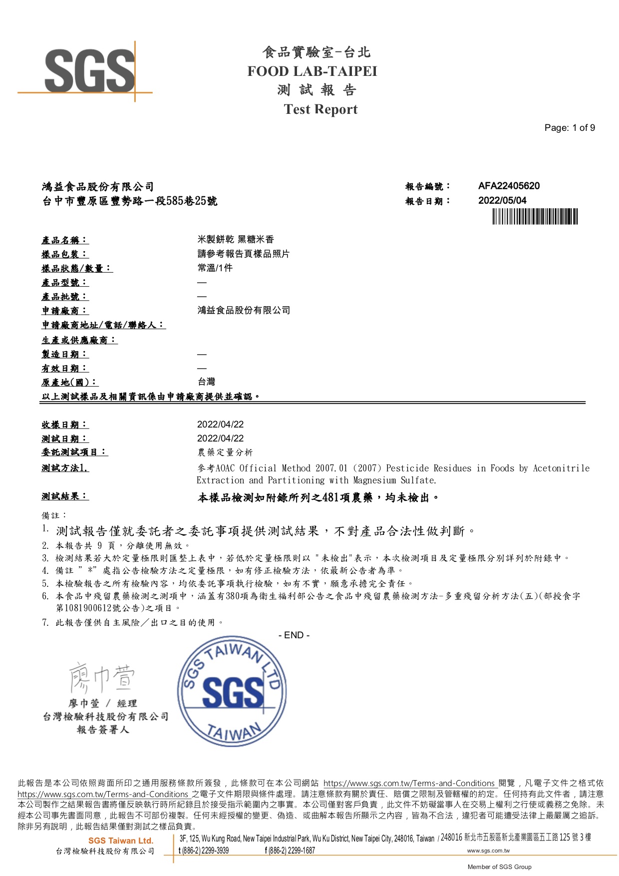 2022 黑糖米香檢驗報告